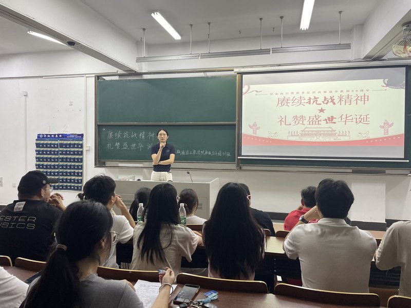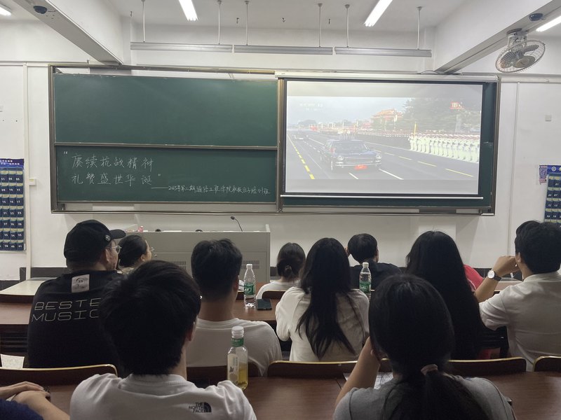 活动在庄严的国歌声中拉开序幕。全体学员齐聚教室,集中观看“纪念中国人民抗日战争暨世界反法西斯战争胜利80周年阅兵”经典片段,直观感受国家从“抗战胜利”到“强国复兴”的伟大跨越。观看结束后,同学们踊跃上台分享感悟,既传递了对祖国的热爱与对历史的敬畏,也展现出新时代青年的思想深度与责任担当。