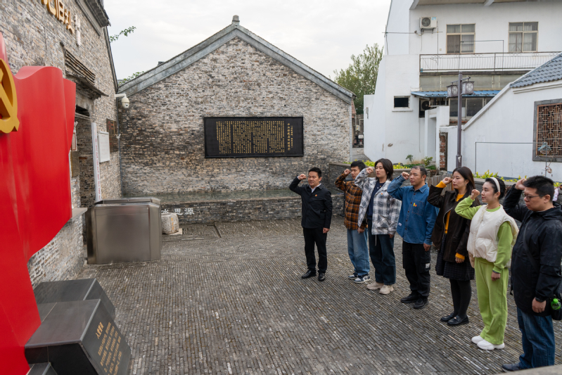 在中共仪征党组织诞生地旧址,全体党员首先在鲜红的党旗下重温入党誓词,庄严的誓词回荡在旧址庭院,进一步坚定了理想信念与初心使命。随后,大家通过参观革命文物、聆听红色故事,深入了解了仪征党组织在艰苦环境中诞生、发展、壮大的奋斗历程,感悟革命先辈为民族解放事业抛头颅、洒热血的崇高气节。