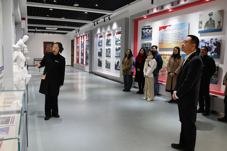 随后,在讲解员的带领下,大家集体参观杨根思烈士陈列馆,聆听烈士英雄事迹。一张张泛黄的历史照片、一件件承载战火记忆的实物展品、一个个生动还原的战斗场景,系统展现了杨根思从“苦难童年投身革命”到“屡立战功威名远扬”,最终在长津湖战役中“血战长津壮烈牺牲”的光辉一生。从新四军时期的“爆破大王”,到在全国战斗英雄代表会议上受到党和国家领导人接见,再到小高岭阵地上以生命践行誓词的英雄,讲解员细致讲述的每一个战斗故事,都让党员们对“不相信有完不成的任务,不相信有克服不了的困难,不相信有战胜不了的敌人”的精神内核有了更深刻的理解。