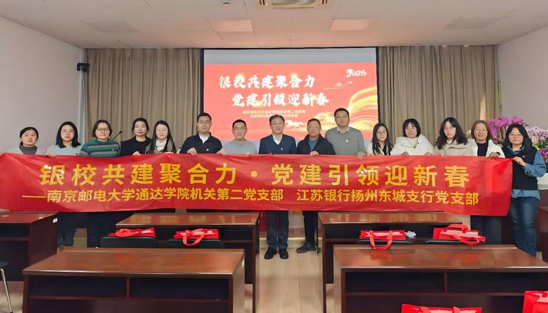为进一步深化基层党组织间的互学互鉴与协同联动,着力探索党建工作与业务发展同向发力、深度融合的有效机制与创新路径,1月13日中午,南京邮电大学通达学院机关第二党支部与江苏银行扬州东城支行党支部在大学生活动中心一楼就业大厅联合开展“银校共建聚合力 党建引领迎新春”主题党日共建活动。机关第二党支部全体党员参加了此次活动。