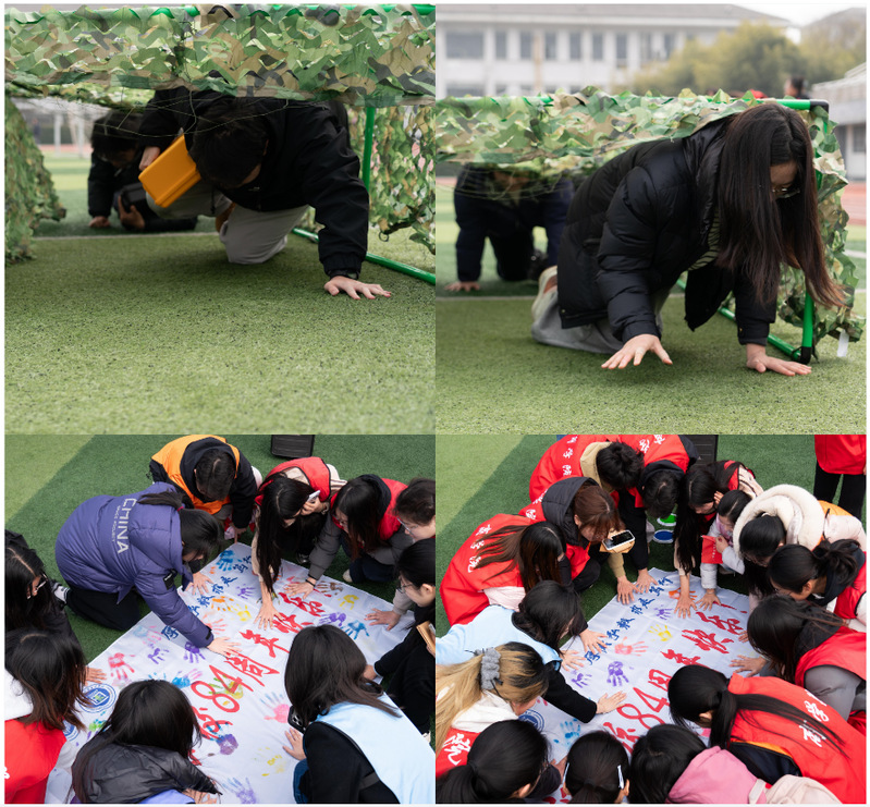 “穿越封锁线”环节模拟战邮学员穿越敌军封锁线运送电台的场景。队员们抬着“电台箱”,在绳网障碍中匍匐前进,体验“使命必达”的艰难与坚定。